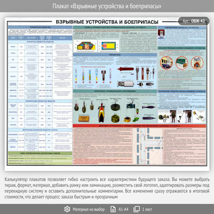 Плакат «Взрывные устройства и боеприпасы» (ОБЖ-42, 1 лист) в Озёрах купить